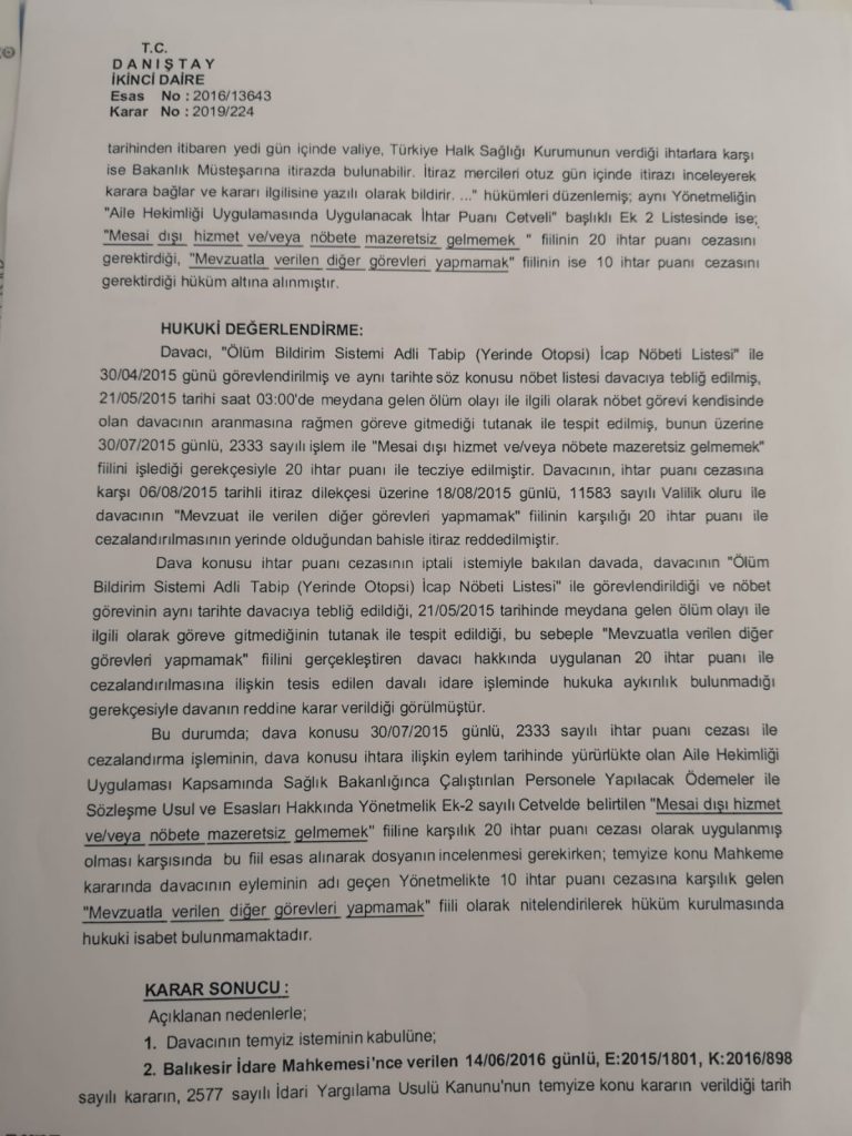 HAKSIZ CEZA PUANINDA ADALET YERİNİ BULDU 24 Mayıs 201910 Temmuz 2019 Balhed 2015 yılında aile hekimlerinin görevi olmayan bir görevlendirme nedeniyle Dernek Başkanımız Dr. Fevzi Turgut a verilen 20 ceza puanı Danıştay tarafından iptal edilmiştir.